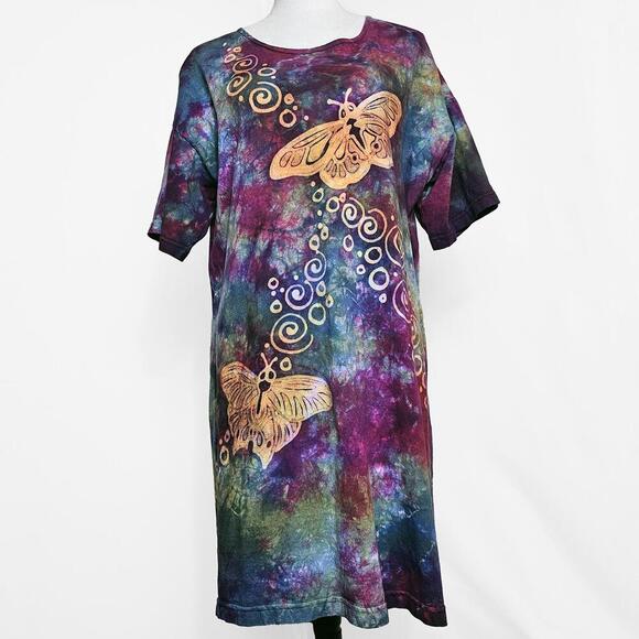 Grebe Batik Art To Wear Handmade Tie-Dye Butterfly Print Cotton Dress Size L