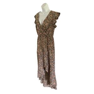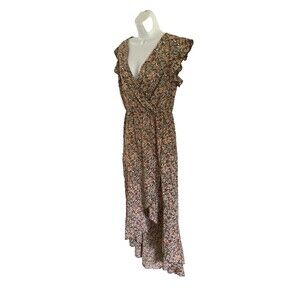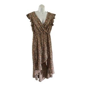 Grecerelle Brown Floral Maxi Dress Size M Flutter Sleeve Boho Cottage Prairie