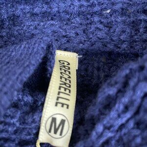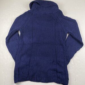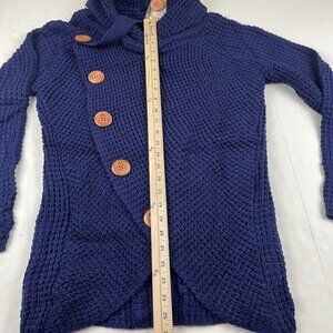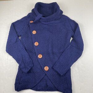 Grecerelle Cowl Neck Sweater Women’s M Navy Chunky Knit Large Button Cozy