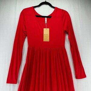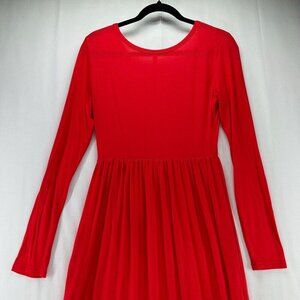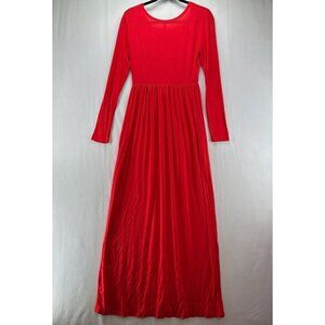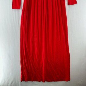 Grecerelle Dress S Shirred A-Line Maxi Scoop Neck Long Sleeve Stretch Rayon Red
