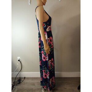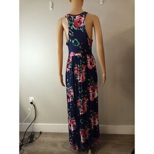 Grecerelle Women's Blue Red Pink Floral Maxi Dress Size Medium