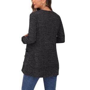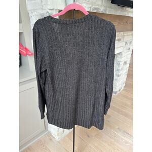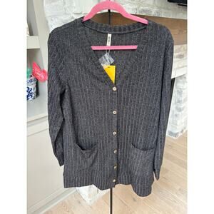 Grecerelle Women's Dark Gray Ribbed Lightweight Knit Outerwear Cardigan Size L