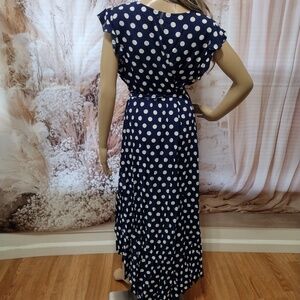 Grecerelle Women's Large Navy & White Polka Dot Surplice Long Flowing Maxi Dress