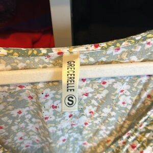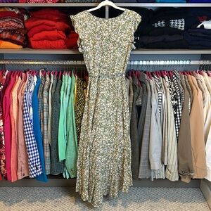 Grecerelle sage/white/pink floral belted sleeveless hi low maxi dress size S