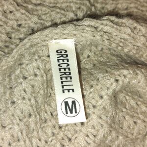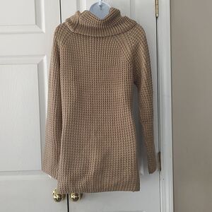 Grecerelle Tan Waffle knit cowl Asymmetric Hem Wrap sweater cardigan Sz M