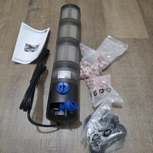 Open box GRECH CF-900 multi-function aquarium filter pump. Item is unused and includes original parts, media bags, and manual as shown in pictures. Designed for aquariums, this pump provides filtration, aeration, and water circulation.