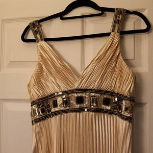 Creme Dress with pleating throughout.