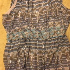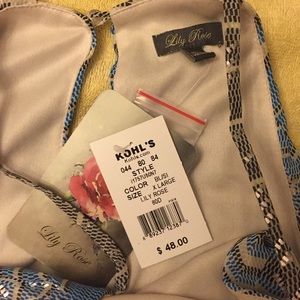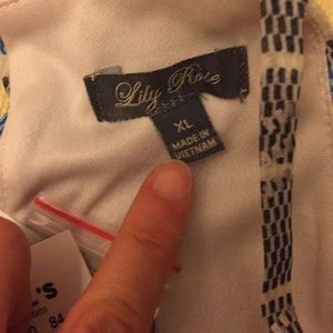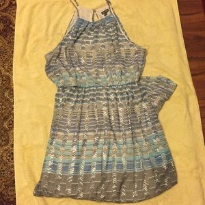 Size XL. Condition is new with tags. Purchased from Kohl’s. It has a very pretty shimmery pattern perfect for summer, halterneck top and cinched at the waist. Silky lightweight material, very flattering. Skirt is full length.