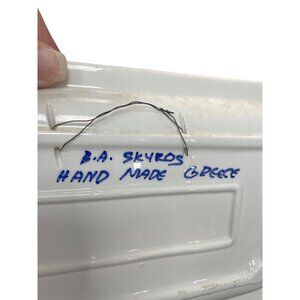 This exquisite Skyros Blue handpainted trinket dish from Greece is perfect for serving or displaying small items. Its artisan craftsmanship and vibrant design make it a unique addition to any home. Beautiful with a very tiny chip of left side edge of dish but doesnt affetct the display at it is unseen. No other defects noted. SKU 9500