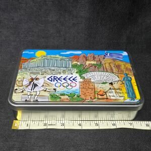 Greece Olympics Collectible Metal Tin Made in Spain. Tin is in good condition with normal signs of ware.