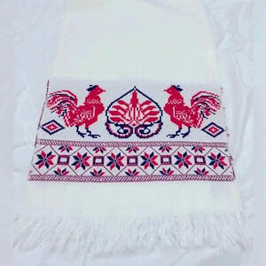 Greek Chicken Rooster Embroidered Vintage Table Runner 80's Vintage Kitschy Fun