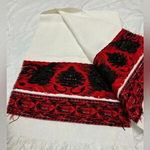 Table Runner woven textile linen. Really unique & fun vintage table runner. Red & black roosters.