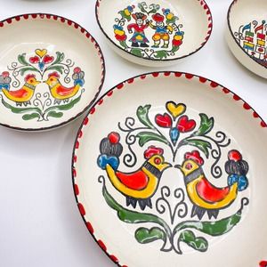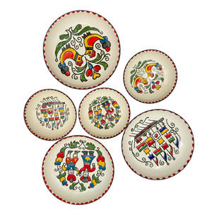 Greek Enamelware Plates Dishes Hand Painted Set Of Six Moissiadis Signed