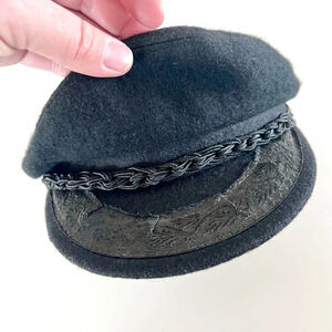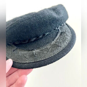 Greek Fisherman Cap Vintage Black Wool Blend Made in Greece Size 7