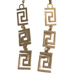 Greek Key Alloy Gold Plated Dangle Drop Earrings
