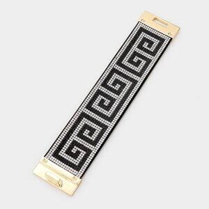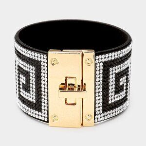 Greek Key Rhinestone Wide Turn Lock Bracelet