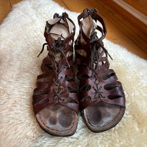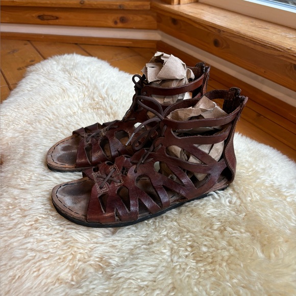 Leather gladiator sandals from Greece. Perfectly broken in and mildly distressed, but structurally sturdy and still in great condition. Soles are excellent. Approximately size 7(measurement shown in pictures). Please check out my closet and bundle items to receive a discount. I’m also happy to receive polite offers at any time!