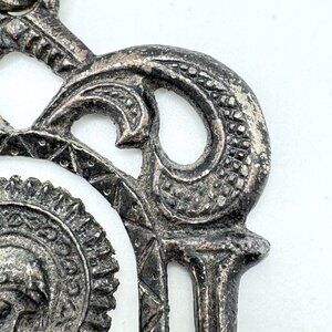 Greek Orthodox Religious Pendant Virgin Mary & Child Jesus Silver-Tone Metal Gre