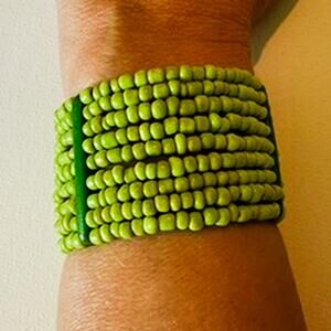 Green 1.5" Rondelle Howlite Gemstone Bead Boho Cuff Bracelet