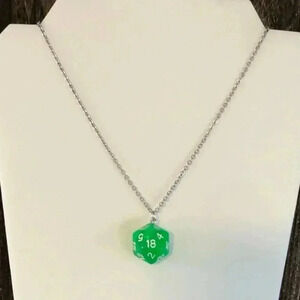 Green 20 Sided Die D&D Dungeons and Dragons Stainless Steel Necklace