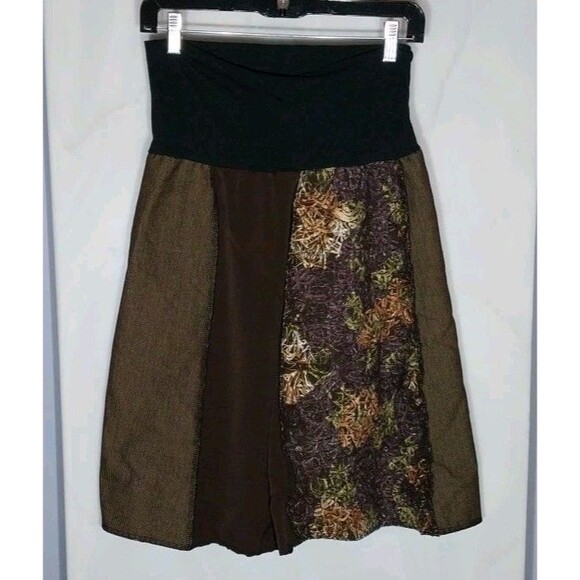 Green 3 Upcycled Skirt Sz M Mixed Media Raw Hem Hippie Boho Grunge GoblinCore