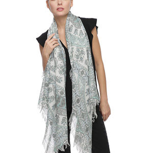 Green / 30% Cotton 70% Polyester / Paisley Floral Pattern Oblong Scarf / 2017 S/s