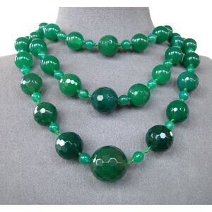 This green multi-strand necklace offers elegance with its faceted beads, durable silver-tone clasp, and versatile design for formal or casual wear.