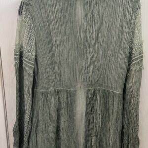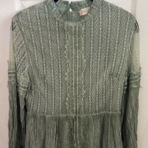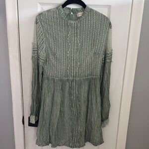 Elegant green long-sleeve dress with intricate patterns. Perfect for any occasion.