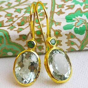 Green Amethyst Gold Plated Dangle Earrings Natural Gem Gemstone Jewelry
