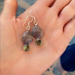 Green Amethyst Sterling Silver Artisan Crafted Earrings. Just over 1 1/2 inches in length. Brand new. Bundle for a discount. Thank you for browsing my closet and happy poshing to you.