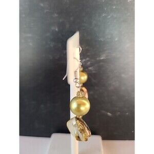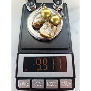 Green And Tan Beaded Shell Dangling Earrings Vintage Costume Jewelry