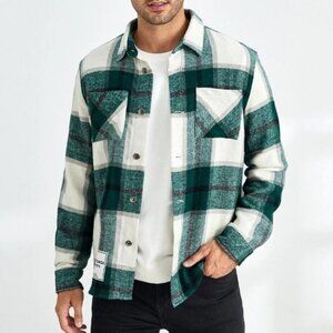 Green And White Mens Pocket Overcoat
