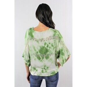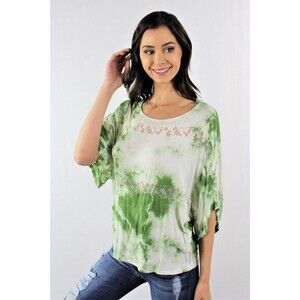 Look at this brand new tye dye green and white top with batwing sleeves and Lace throughout. 96% Rayon.