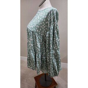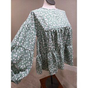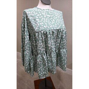 Green Animal Print Long Sleeve Tiered Blouse By 143 Story