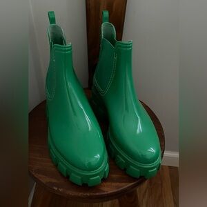 Vibrant green rubber angle boot with chunky tread - total Bottega vibes