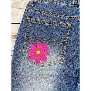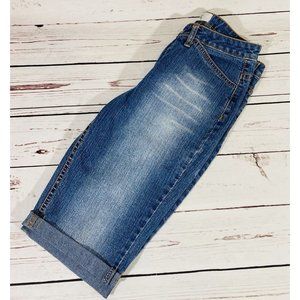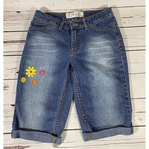 Green Apparel Jean Shorts Womens Size 6 Denim Embroidered Flowers Long Hippie