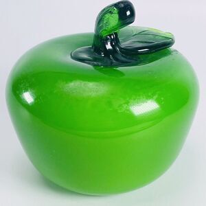 Green Art Glass Apple Green Stem Leaf 3.25 Inches 3-G Imports Paperweight