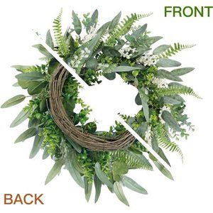 VERSATILE DECOR:This artificial eucalyptus wreath is suitable for front door, wall, indoors, outdoors, window, fireplace, farmhouse, living room, porch, centerpiece party, wedding, holiday and festival celebration. It will provide your home a feeling of natural and vitality.