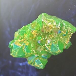 Aura Quartz is a natural quartz crystal with manmade modifications to create its signature iridescent appearance. This “aura coating” is created by fusing precious metal particles like gold or platinum to the surface of the crystal in a high-heat vacuum chamber.