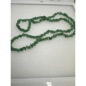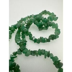 This is a green aventurine chip bead necklace, perfect for anyone who likes natural stone jewelry or wants to use it for crafts. The beads are all a little different in shape and size, which gives it a cool, earthy vibe. It's in good shape and ready to wear. No clasp. It measures 34 inches long approximately.