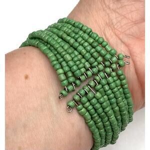Green Aventurine Chipstone Bracelet Cuff Seed Beads Artisan
