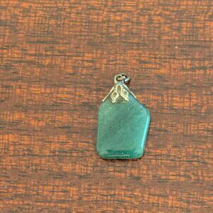 Green Aventurine Gemstone Pendant Charm Necklace Silver Tone Hardware Boho Witch