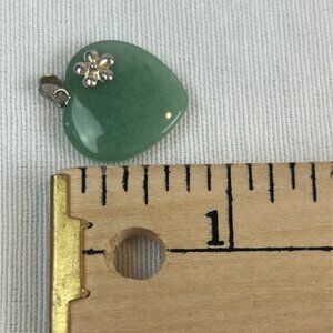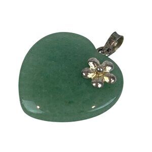 Green Aventurine Heart Pendant With Silver Flower Accent