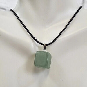 Green Aventurine Natural Stone Cube Necklace with 18in Black Chain SN20