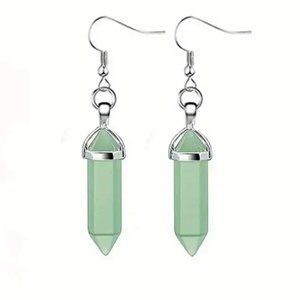 Green Aventurine Natural Stone Gemstone Handmade Hexagon Point Dangle Earrings