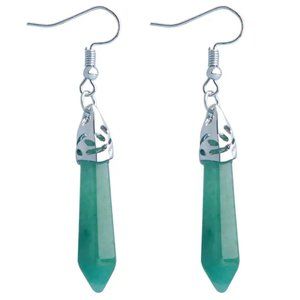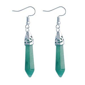 Green Aventurine Natural Stone Gemstone Hexagon Point Healing Dangle Earrings