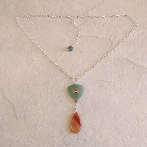 Green Aventurine & Orange Banded Agate "Y" Necklace! Prosperity Feminine Essence