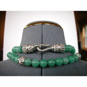 This elegant necklace, crafted with smooth green aventurine beads and intricate silver accents, adds a touch of sophistication to any ensemble. The decorative hook closure ensures a secure fit, while the natural beauty of the aventurine enhances its visual appeal. This piece is a testament to fine craftsmanship and quality materials.