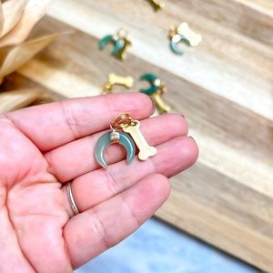 Green Aventurine and Bone Charms , Dog Charms, Gifts, Crystals - Green