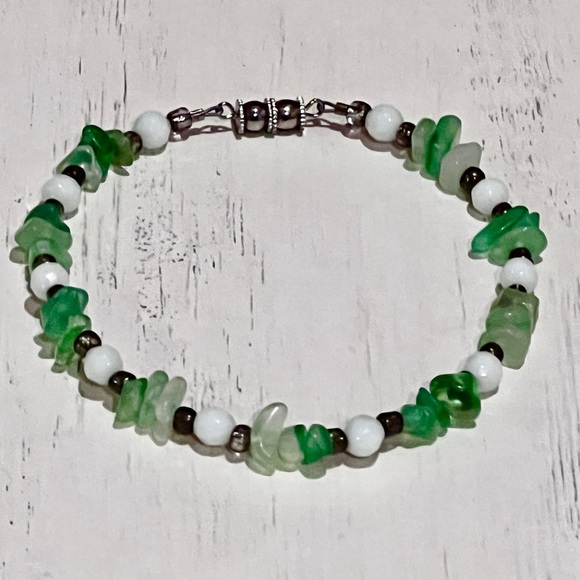 Green Aventurine and White Howlite Handmade Beaded Ankle Bracelet